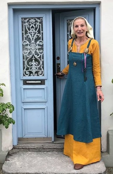 Author Octavia Randolph has contracted with me to make her a series of different gowns, some depicting the time era that her wonderful historical fiction novels represent! Here is Octavia, standing in the doorway of her 200 year old house on the Swedish island of Gotland. She is wearing the ensemble that I created long-distance for her. Check her out here: www.Octavia.net Her first book 'The Circle of Ceridwen' can be downloaded for free if you sign up on her mailing list. Scroll down on her site and you will find the offer.