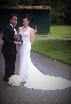 Custom wedding June 2016 - After creating the cosplay dress for Emerald City Comicon (mentioned below), I was challenged to create a wedding dress modeled after the red velvet dress worn by Lana Parilla in the TV show Once Upon a Time. The dress was changed to eliminate the sleeves and create a halter. Luckily, the cosplayer who I do these dresses for is my daughter, so she was available for many, many fittings to get things to be just right. Here is a photo of the completed dress, with closeups in the 'Gallery', if you're interested. Once I get the professionally captured photos, I will post them here and in the 'Gallery'.